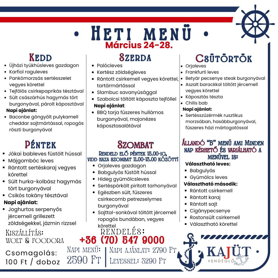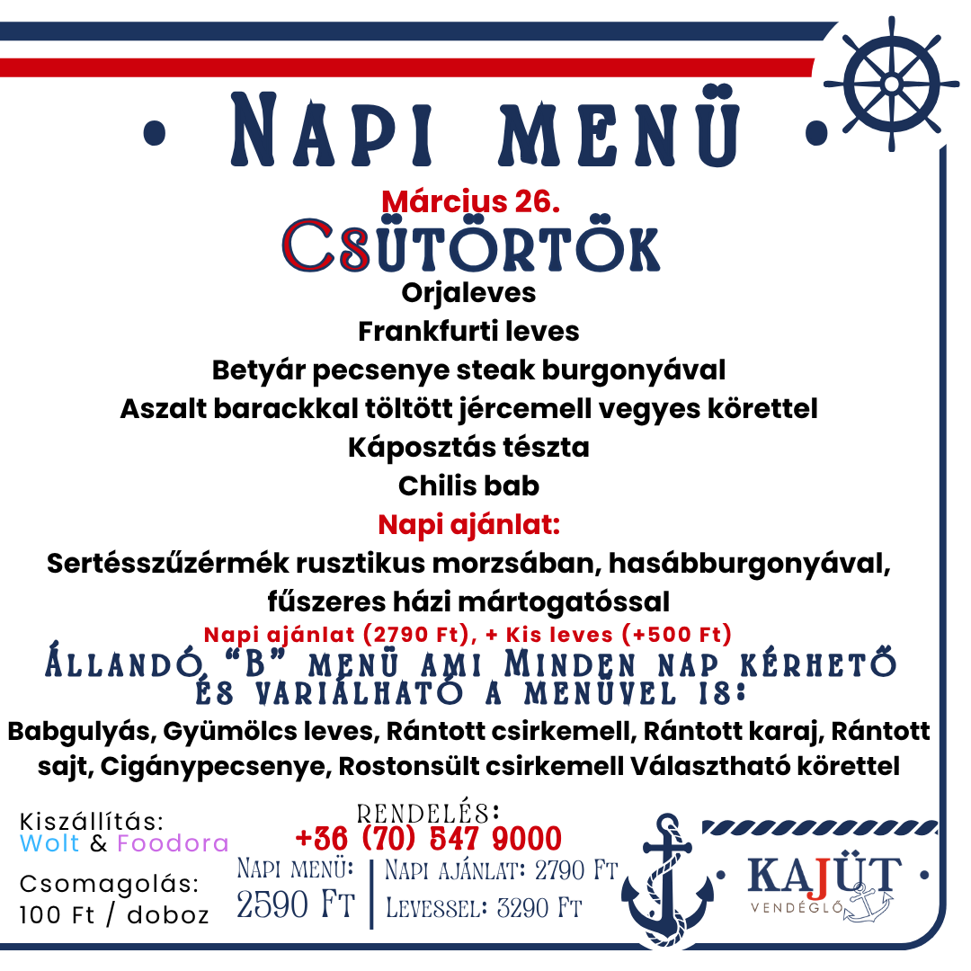 Tálaink a köretet nem tartalmazzák!