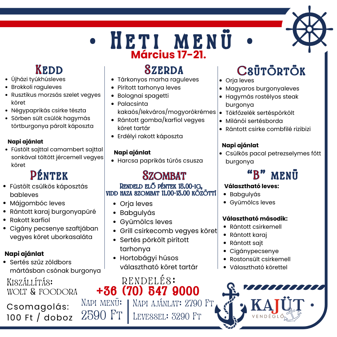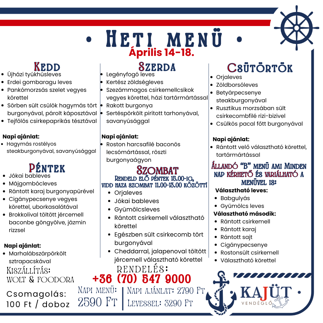 Tálaink a köretet nem tartalmazzák!